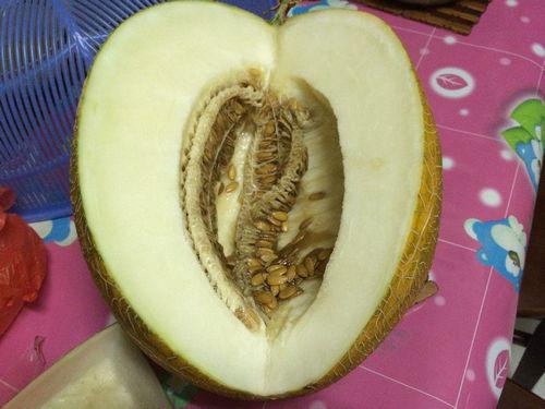 3. 烹饪:将白肉哈密瓜切成块状,与其他食材搭配,制作成美味的菜肴。