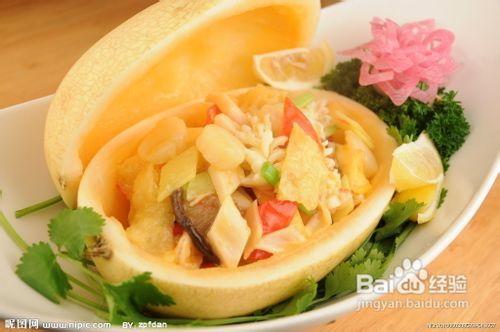 1. 清蒸螃蟹哈密瓜:将螃蟹和哈密瓜分别蒸熟,然后摆放在盘子里,淋上特制的酱汁即可。